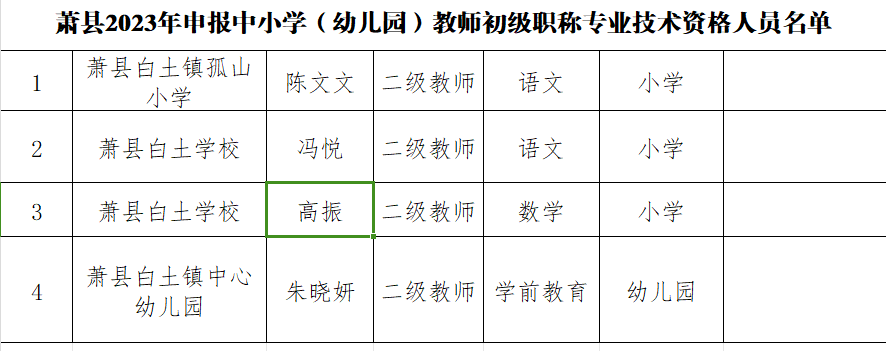 白土镇2023年申报中小学(幼儿园)教师初级职称专业技术资格人员名单