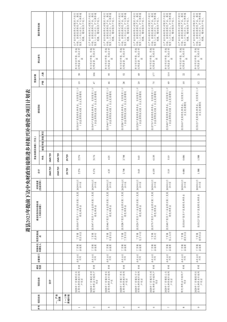 【资金批复】关于下达萧县2023年县级财政衔接推进乡村振兴补助资金分配结果和项目计划的批复(丁里镇)