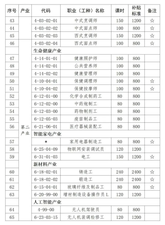 6.补贴标准:按照市级工种目录及补贴标准执行。