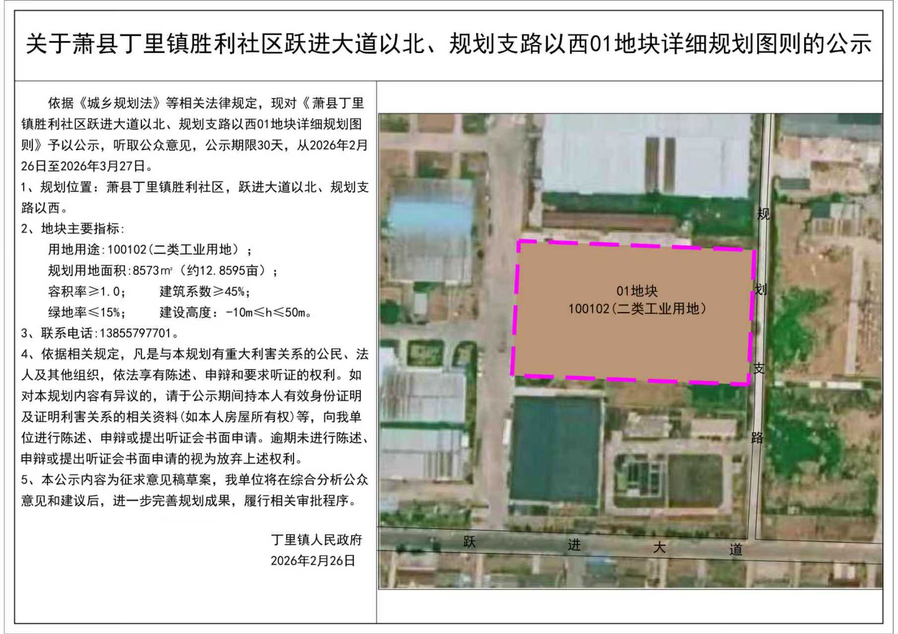 关于萧县丁里镇社区跃进大道以北、规划支路以西01地块详细规划图则的公示