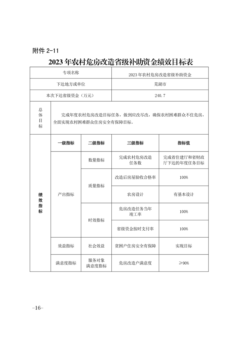 安徽省财政厅安徽省住房和城乡建设厅关于下达2023年省级农村危房改造补助资金的通知
