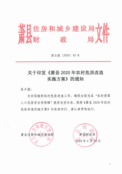 以习近平新时代中国特色社会主义思想为指导,深入学习贯彻习近平总书记在决战决胜脱贫攻坚座谈会上的重要讲话精神,持续开展问题排查核查,着力解决“一些农村危房改造质量不高”问题,确保全面完成“农村贫困人口住房安全有保障”目标任务,根据宿州市住建局、宿州市财政局关于印发《宿州市2020年农村危房改造实施方案》宿建[2020]50号文件精神,结合本县实际,制定本方案。