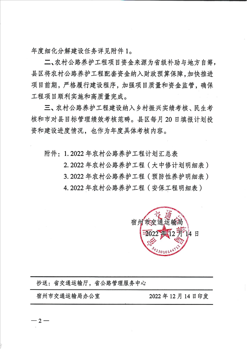 宿州市交通运输局关于下达2023年农村公路养护工程建设计划的通知