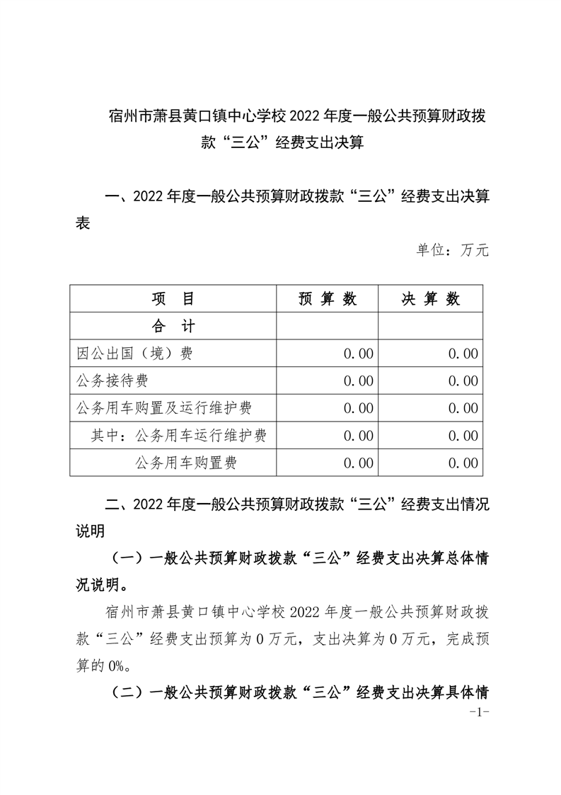【年度决算】宿州市萧县黄口镇中心学校2022年度一般公共预算财政拨款“三公”经费支出决算