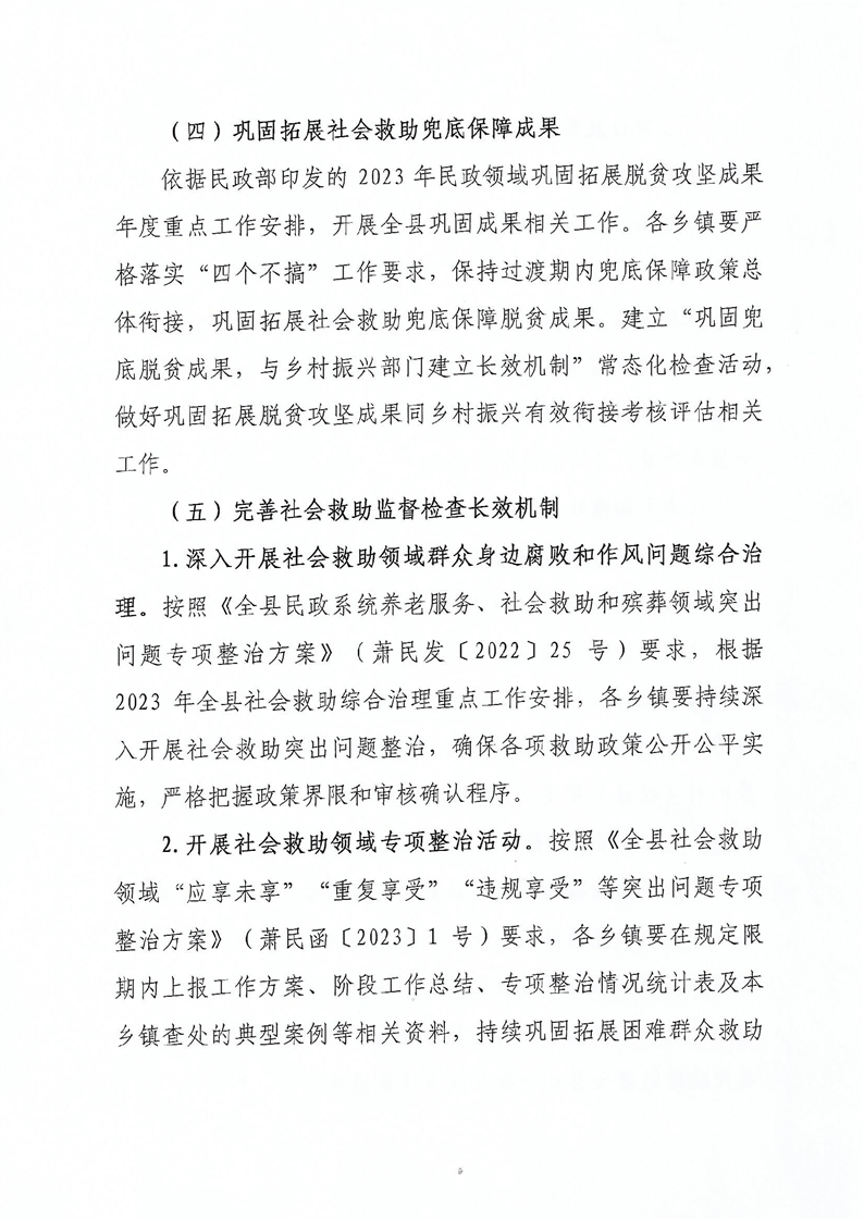 【政策文件】印发《关于进一步落实全县社会救助重点工作安排的通知》(萧民函〔2023〕3号)