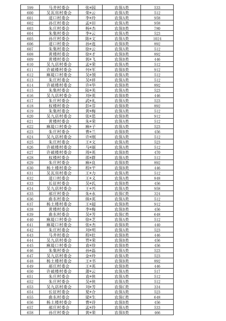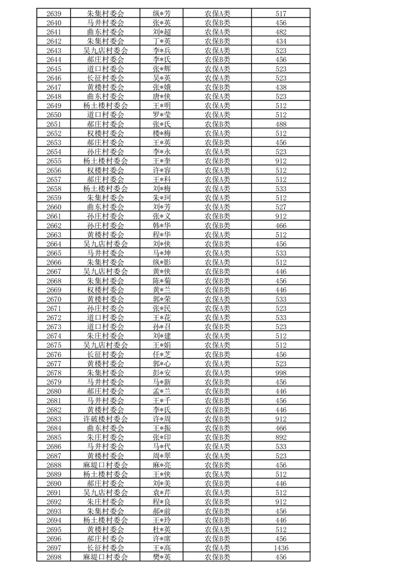 【低保】2024年8月萧县马井镇农村低保资金发放花名册