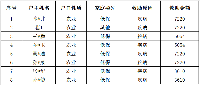 【临时救助】2025年8月萧县马井镇临时救助发放名单
