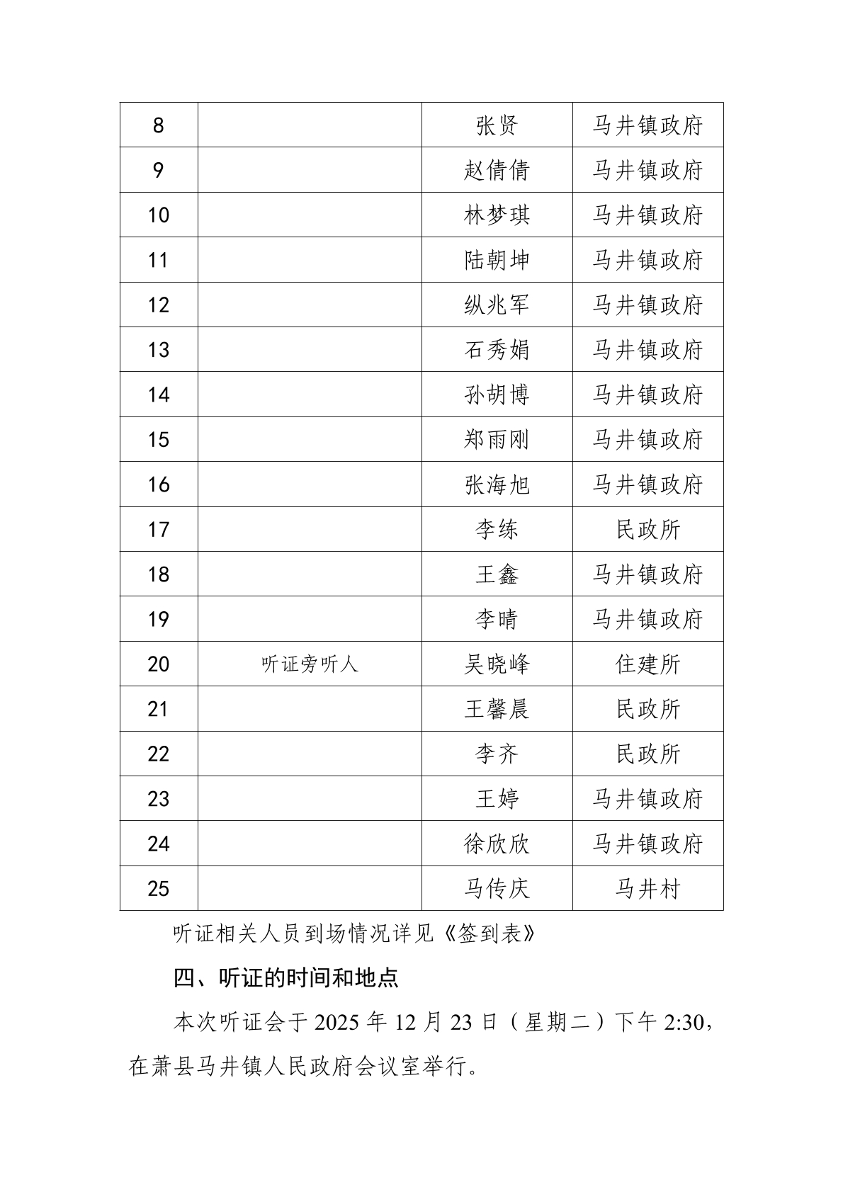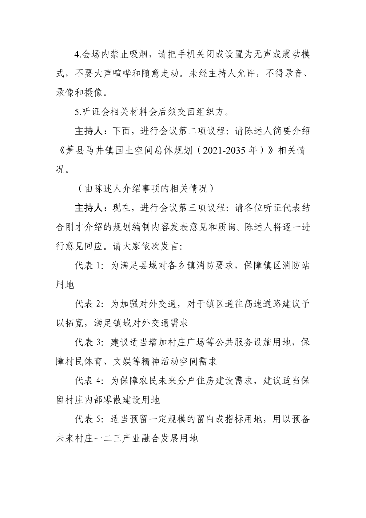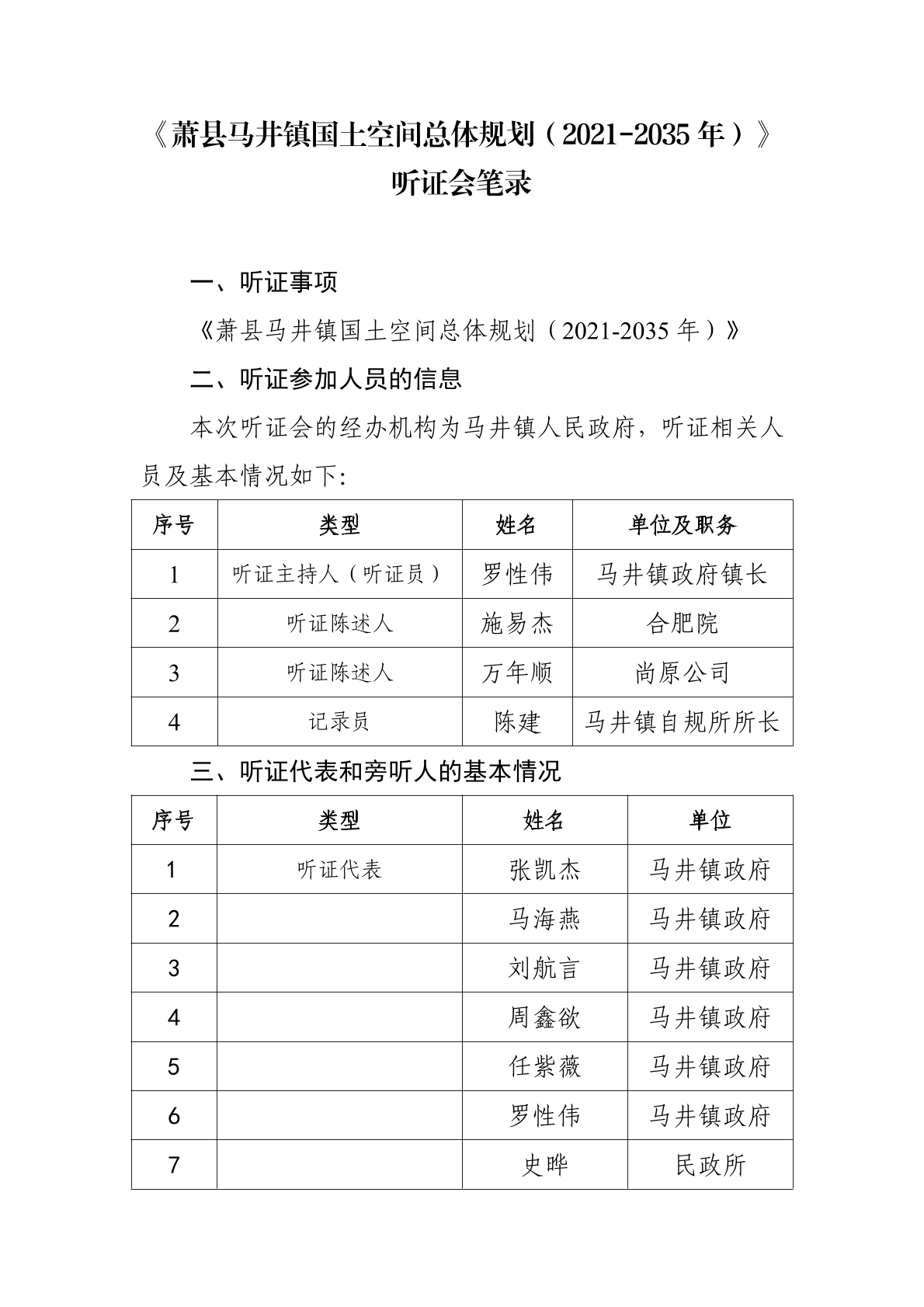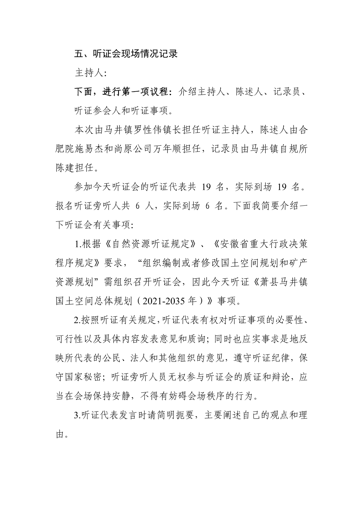 《萧县马井镇国土空间总体规划(2021-2035年)》听证会笔录