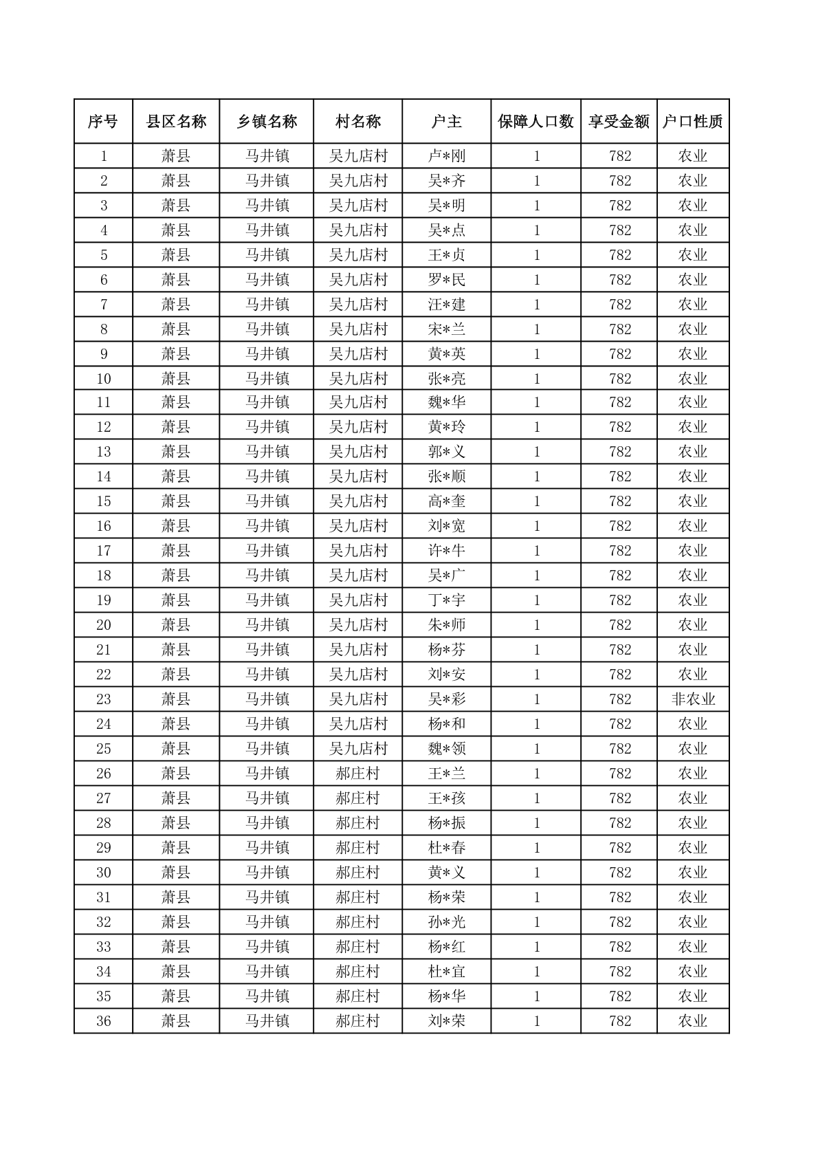 【特困】萧县马井镇2026年2月特困资金发放花名册