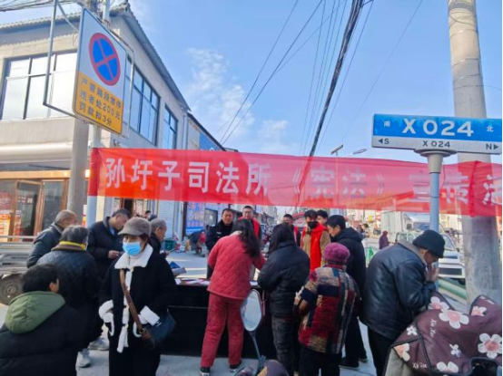 2025年12月4日,在第十二个“国家宪法日”到来之际,孙圩子司法所组织工作人员及普法志愿者走上街头,在人流密集的路口开展了以“学习宣传贯彻习近平法治思想,推动宪法深入人心。”为主题的宪法宣传活动,将法律知识送到群众身边,营造了尊法、学法、守法、用法的浓厚氛围。