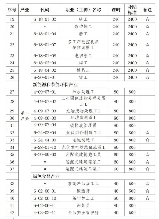 2.对象范围:脱贫人口、城乡未继续升学初高中毕业生、农村转移劳动者(含新生代农民工、退捕渔民)、城镇失业人员、退役军人、就业困难人员(含残疾人等重点群体)。