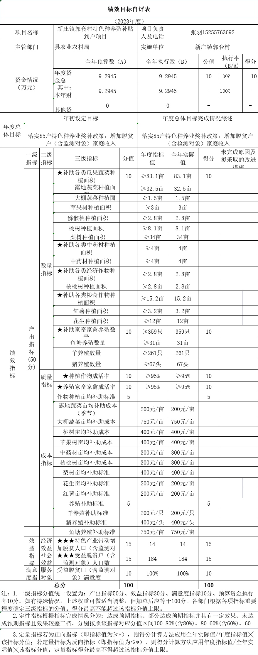 新庄镇郭套村2023年特色种养补贴到户项目资金使用情况