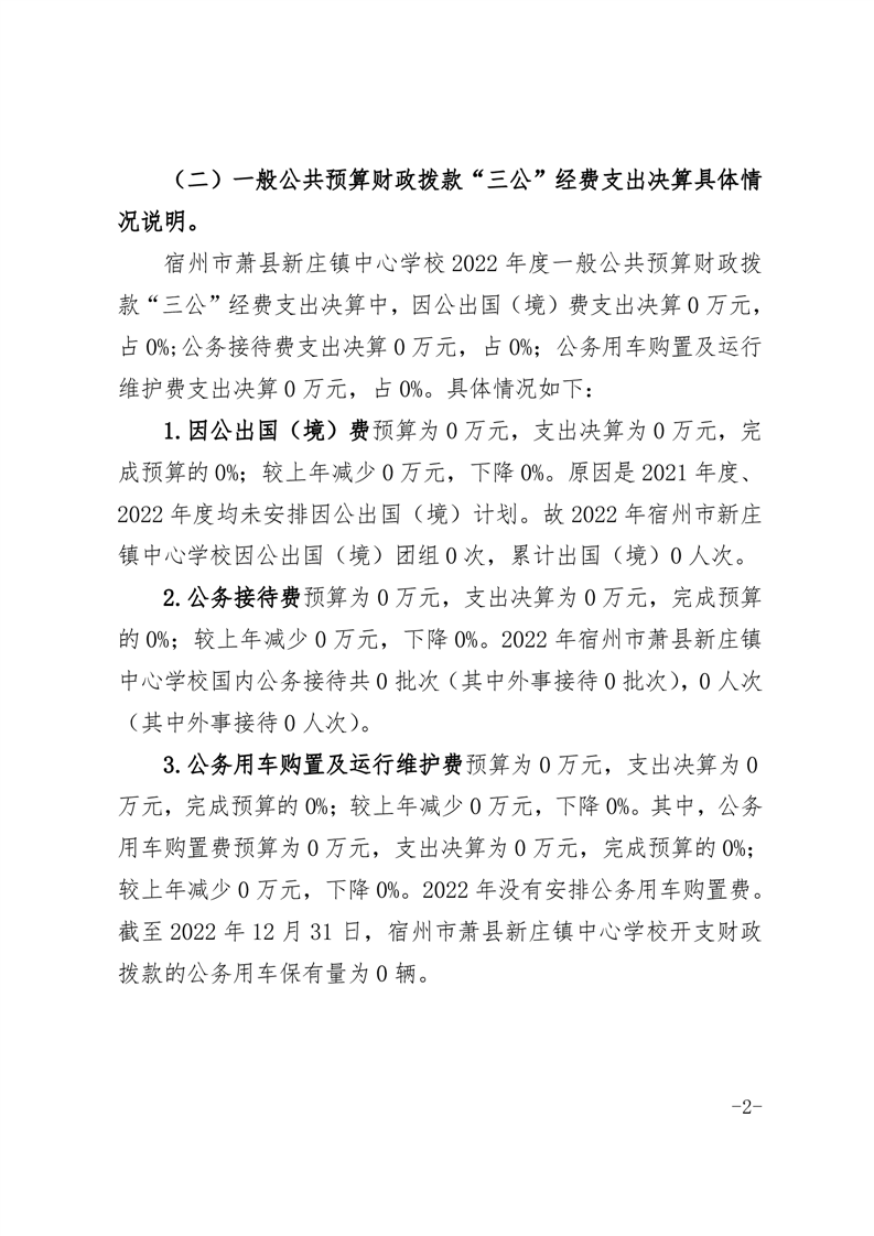 【年度决算信息】宿州市萧县新庄镇中心学校2022年度一般公共预算财政拨款“三公”经费支出决算