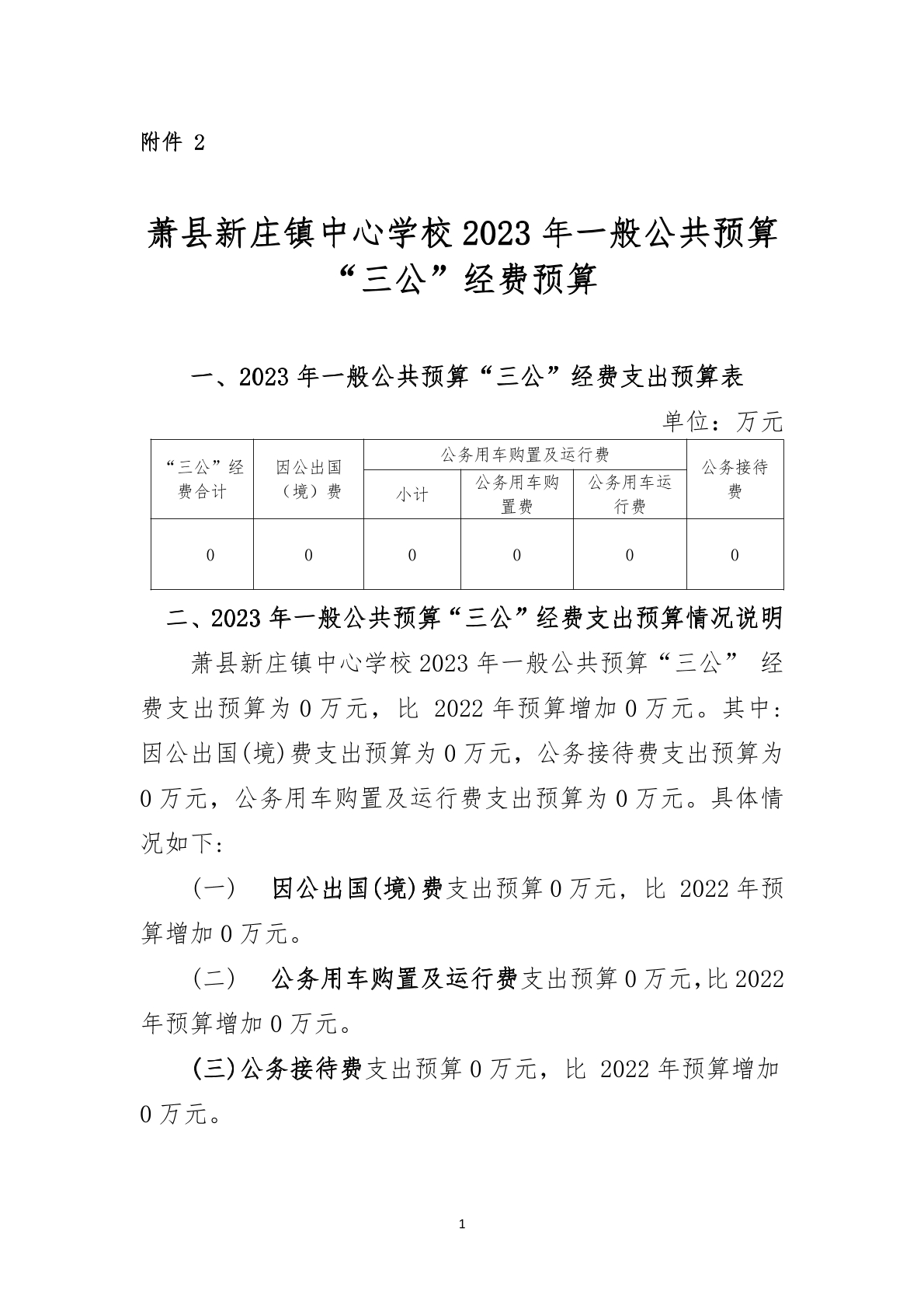 【年度预算信息】萧县新庄镇中心校2023年一般公共预算“三公”经费预算