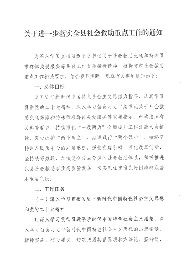 关于印发《关于进一步落实全县社会救助重点工作安排的通知》(萧民函〔2023〕3号)