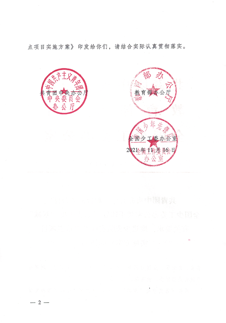 《关于印发落实中央“双减”有关要求推进少先队实践教育重点项目实施方案的通知》