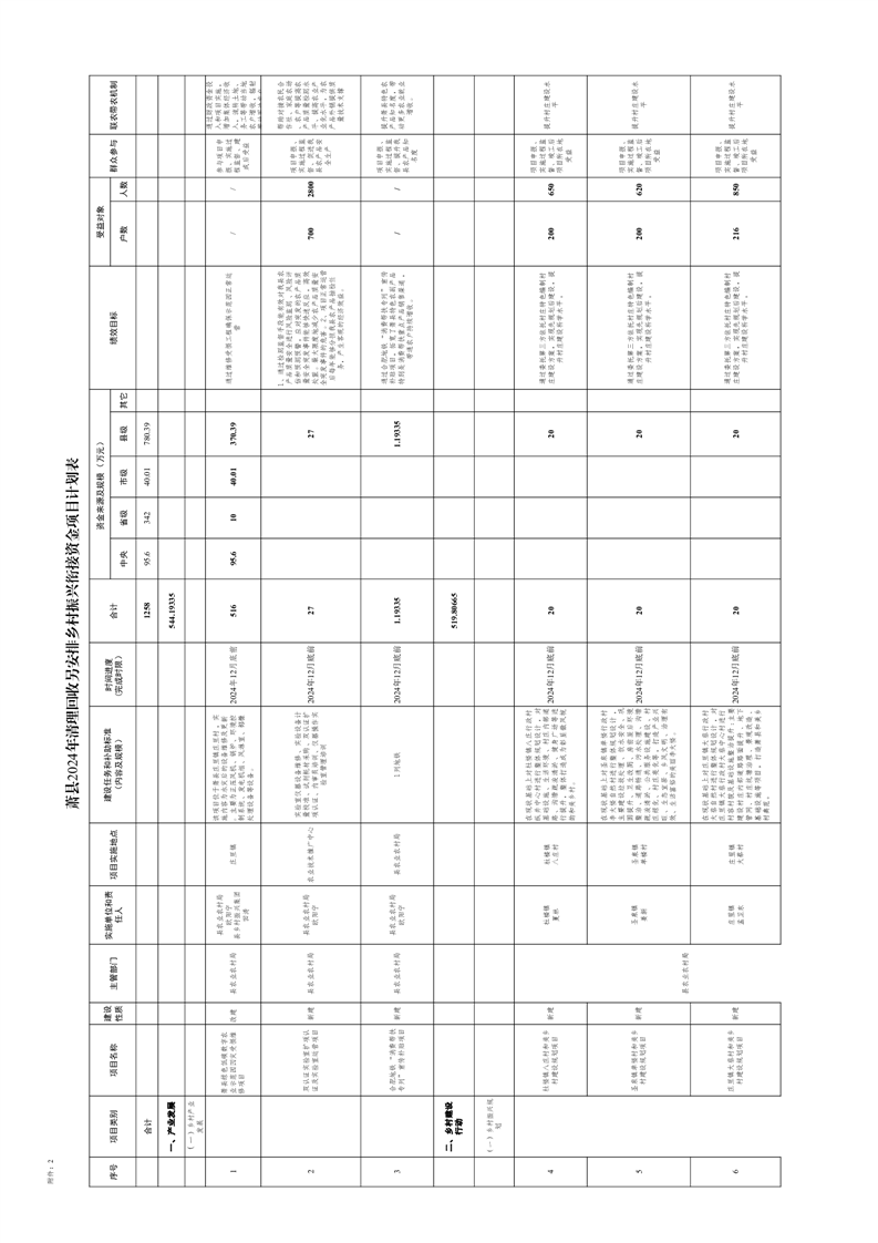 关于下达萧县2024年清理财政衔接推进乡村振兴补助资金结余资金再分配结果和项目计划的批复