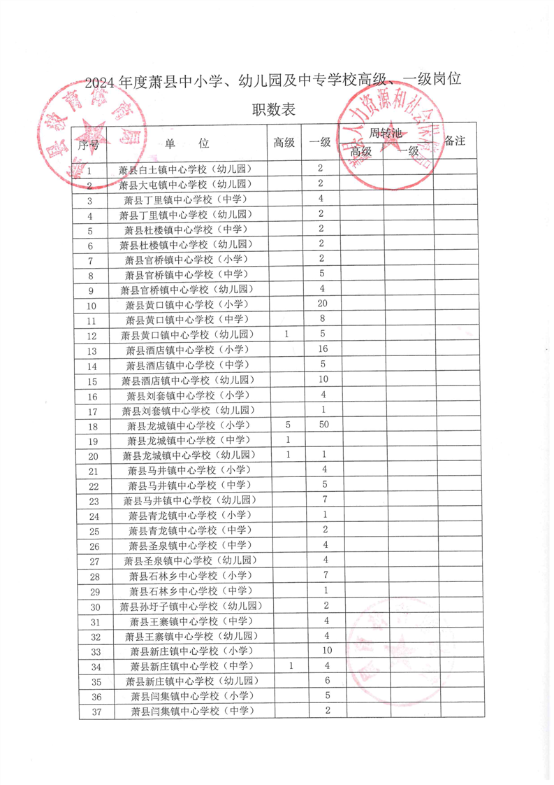 【评审通知】关于2024年度萧县教育系列专业技术职务岗位使用情况的通知