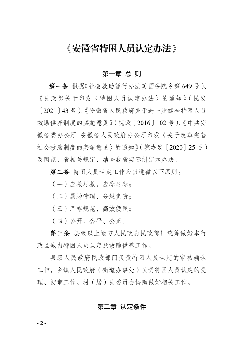 关于印发《安徽省特困人员认定办法》的通知(皖民社救字〔2021〕74号)
