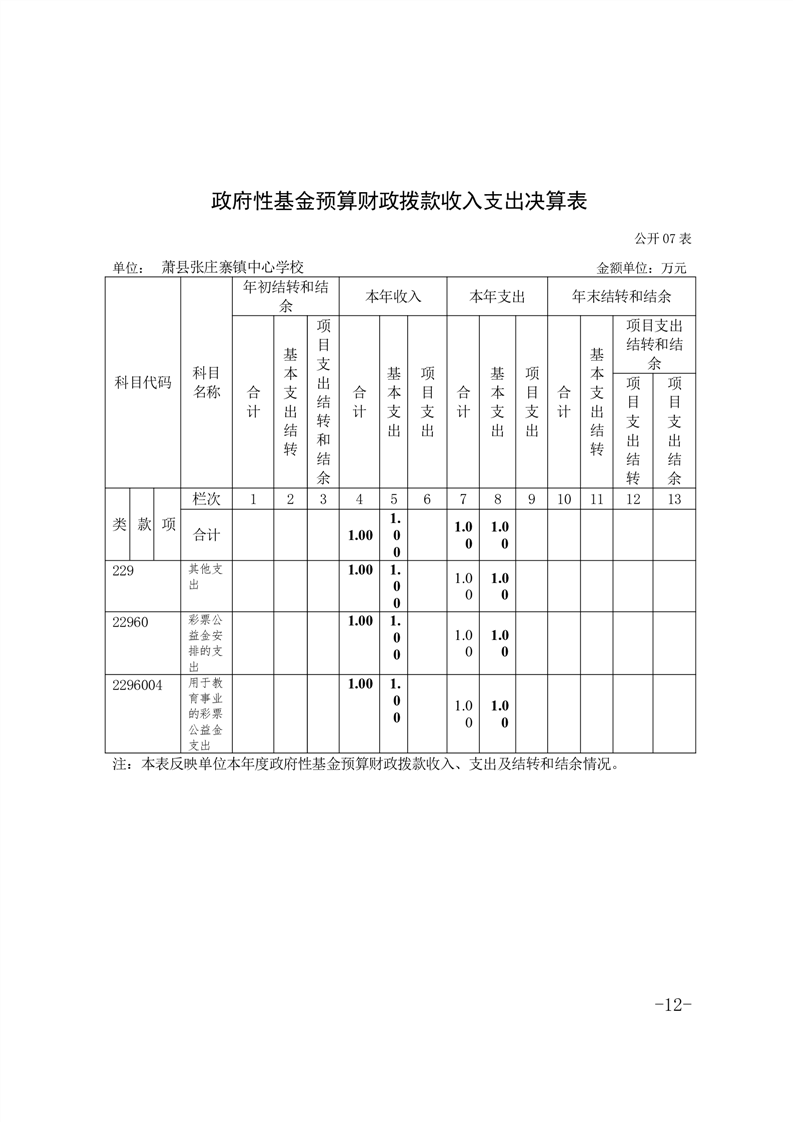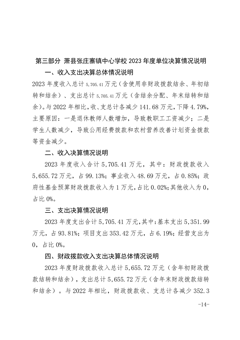 【年度决算信息】萧县张庄寨镇中心学校2023年度单位决算