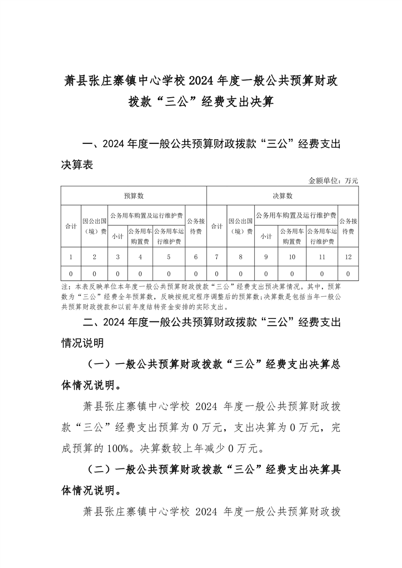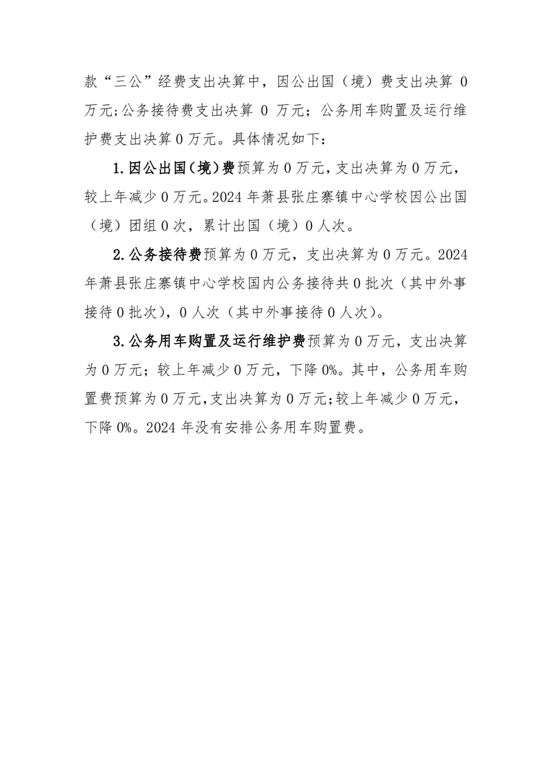【年度决算信息】萧县张庄寨镇中心学校2024年度一般公共预算财政拨款“三公”经费支出决算