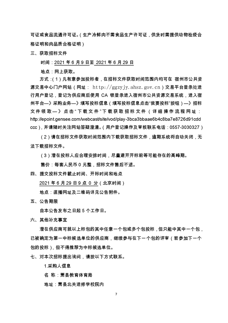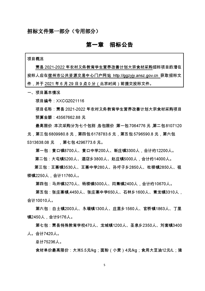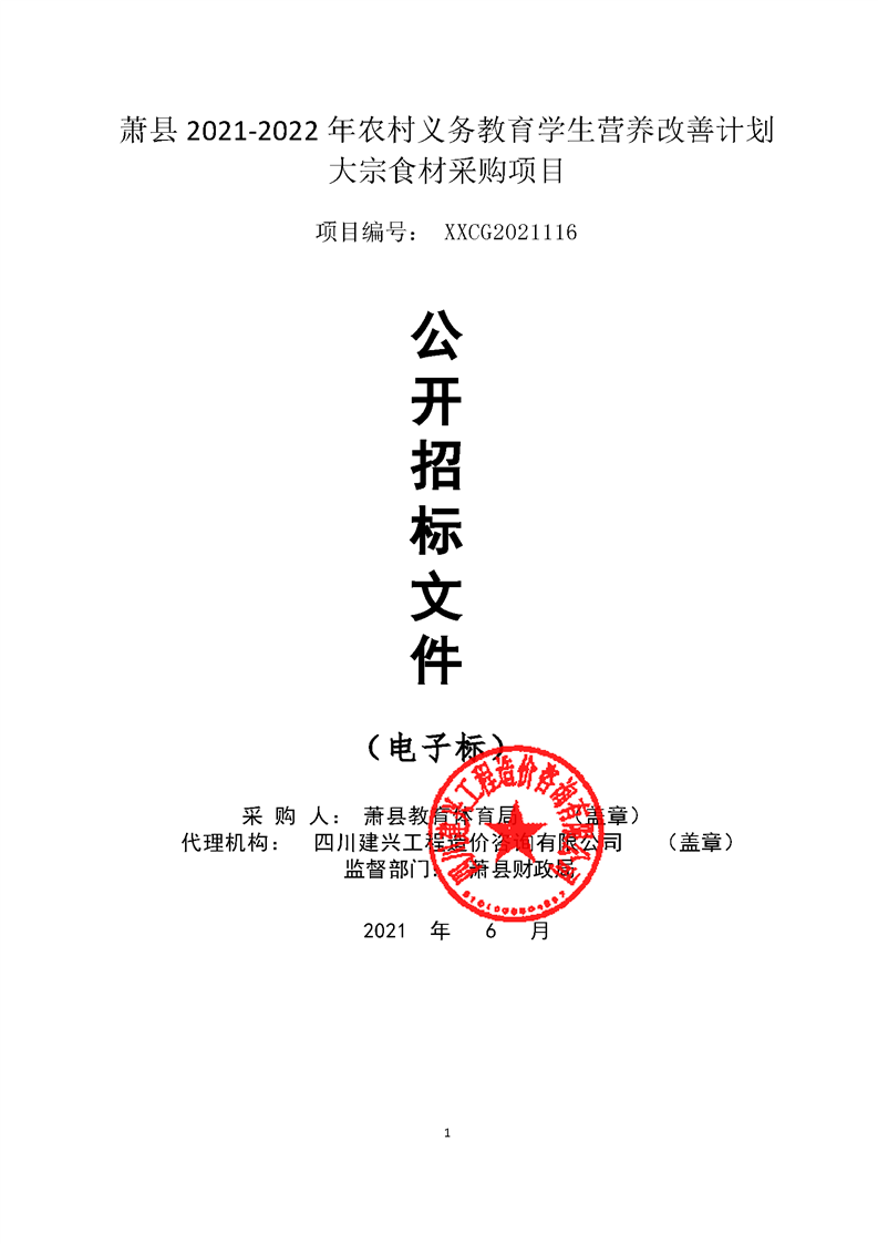 萧县2021—2022年农村义务教育学生营养改善计划大宗食材采购项目公示