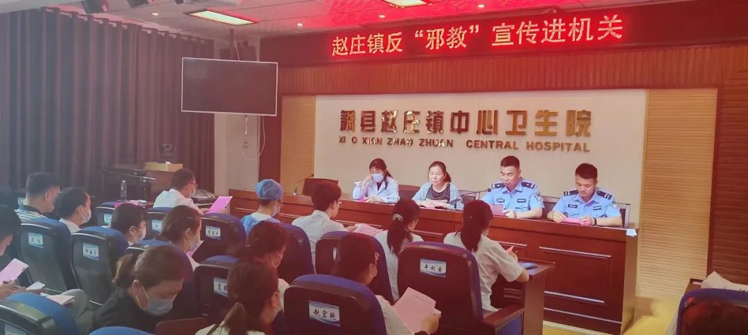 6月19日,赵庄镇政府组织派出所到中心卫生院开展反邪知识讲座宣传活动,活动内容主要是增强医护人员防邪、反邪的应变能力和自身保护意识。