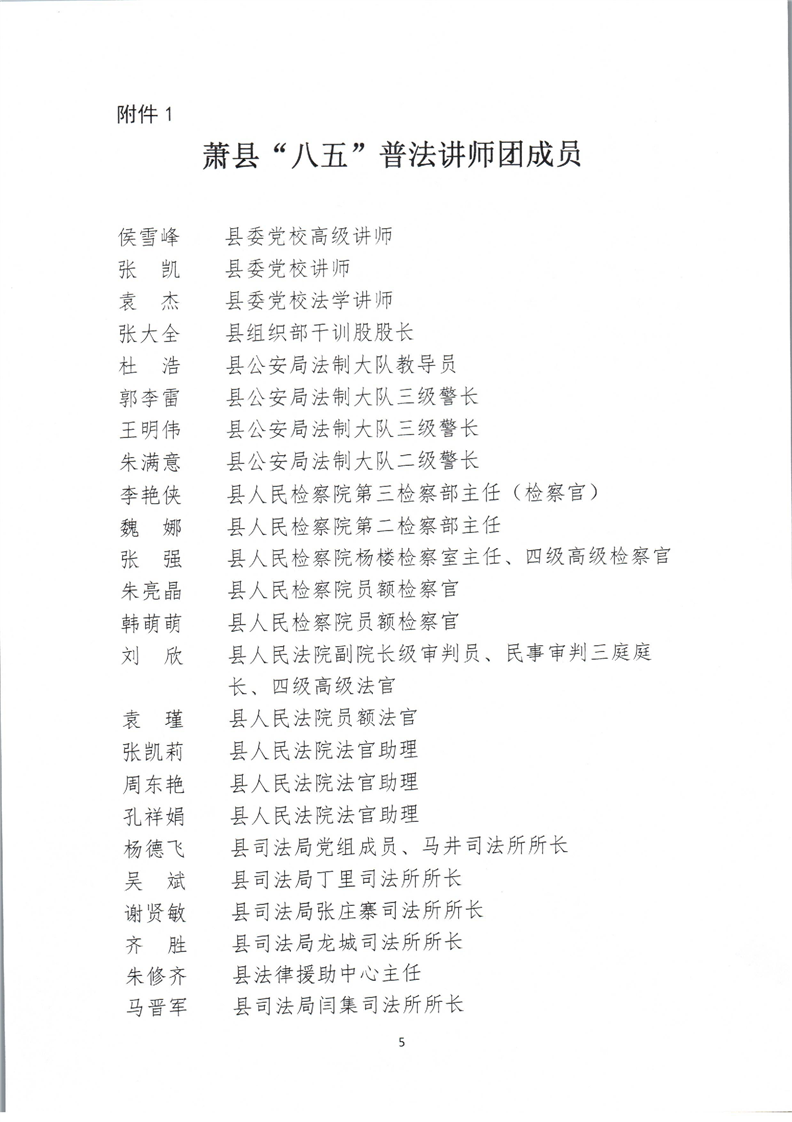 【普法讲师团】关于成立萧县“八五”普法讲师团的通知