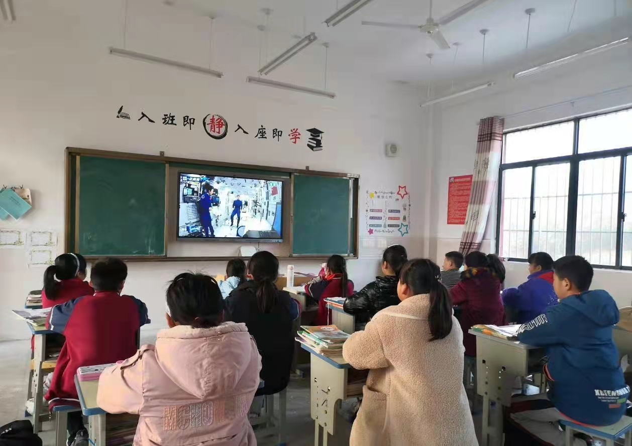 “天宫课堂”第一课于2021年12月9日下午15:40开课了,神舟十三号乘组航天员翟志刚、王亚平、叶光富在中国空间站进行太空授课,萧县庄里镇尠沟教学点的学生们跟着太空里的三位老师上了一堂神奇有趣的课后服务科学课。