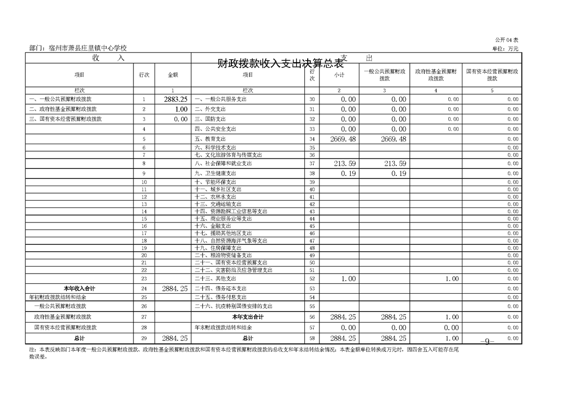 萧县庄里镇中心学校2021年度单位决算