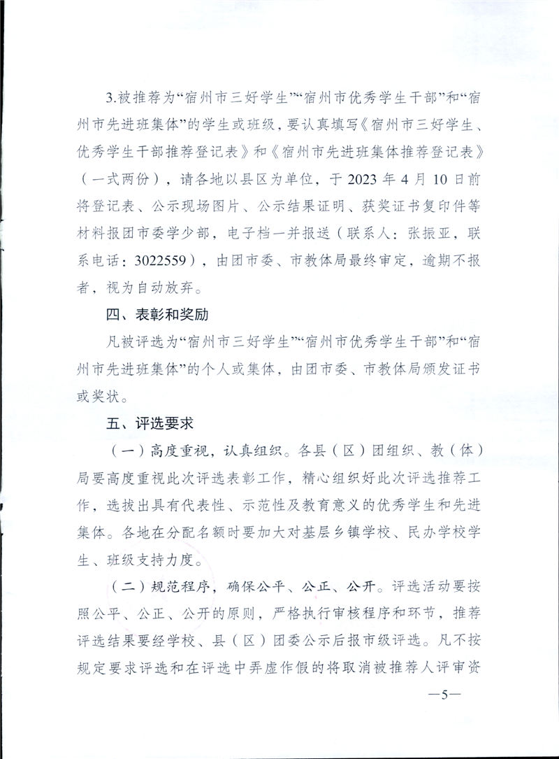 【学生评优奖励】关于评选2022-2023学年度“宿州市三好学生”“宿州市优秀学生干部”和“宿州市先进班集体”的通知