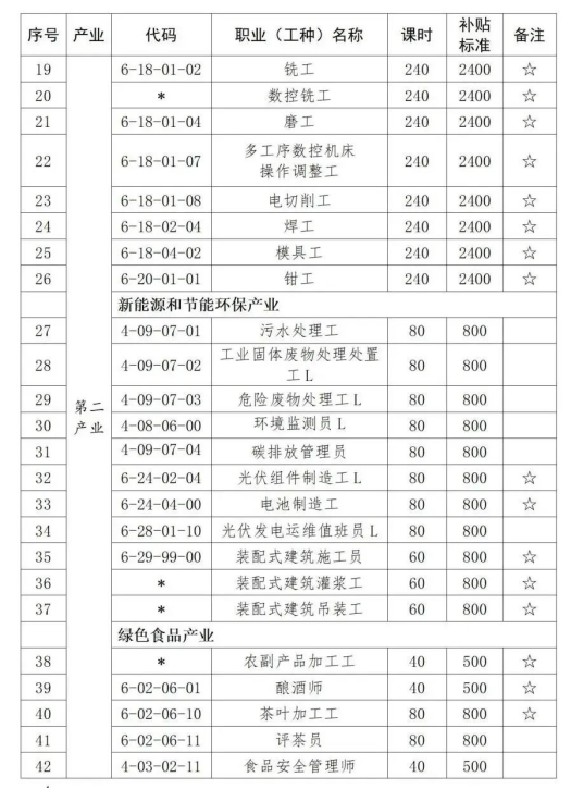 2.对象范围:脱贫人口、城乡未继续升学初高中毕业生、农村转移劳动者(含新生代农民工、退捕渔民)、城镇失业人员、退役军人、就业困难人员(含残疾人等重点群体)。