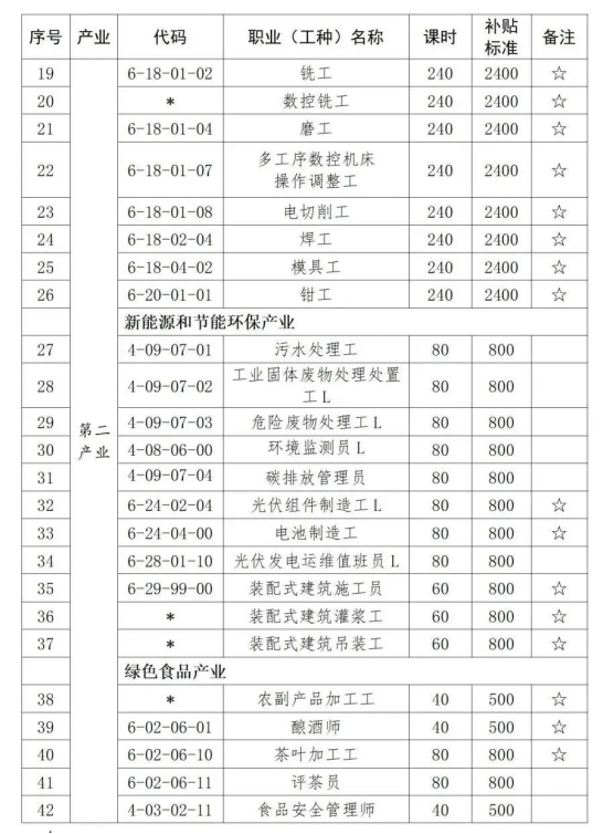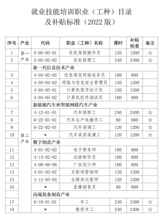 6.补贴标准:按照市级工种目录及补贴标准执行。
