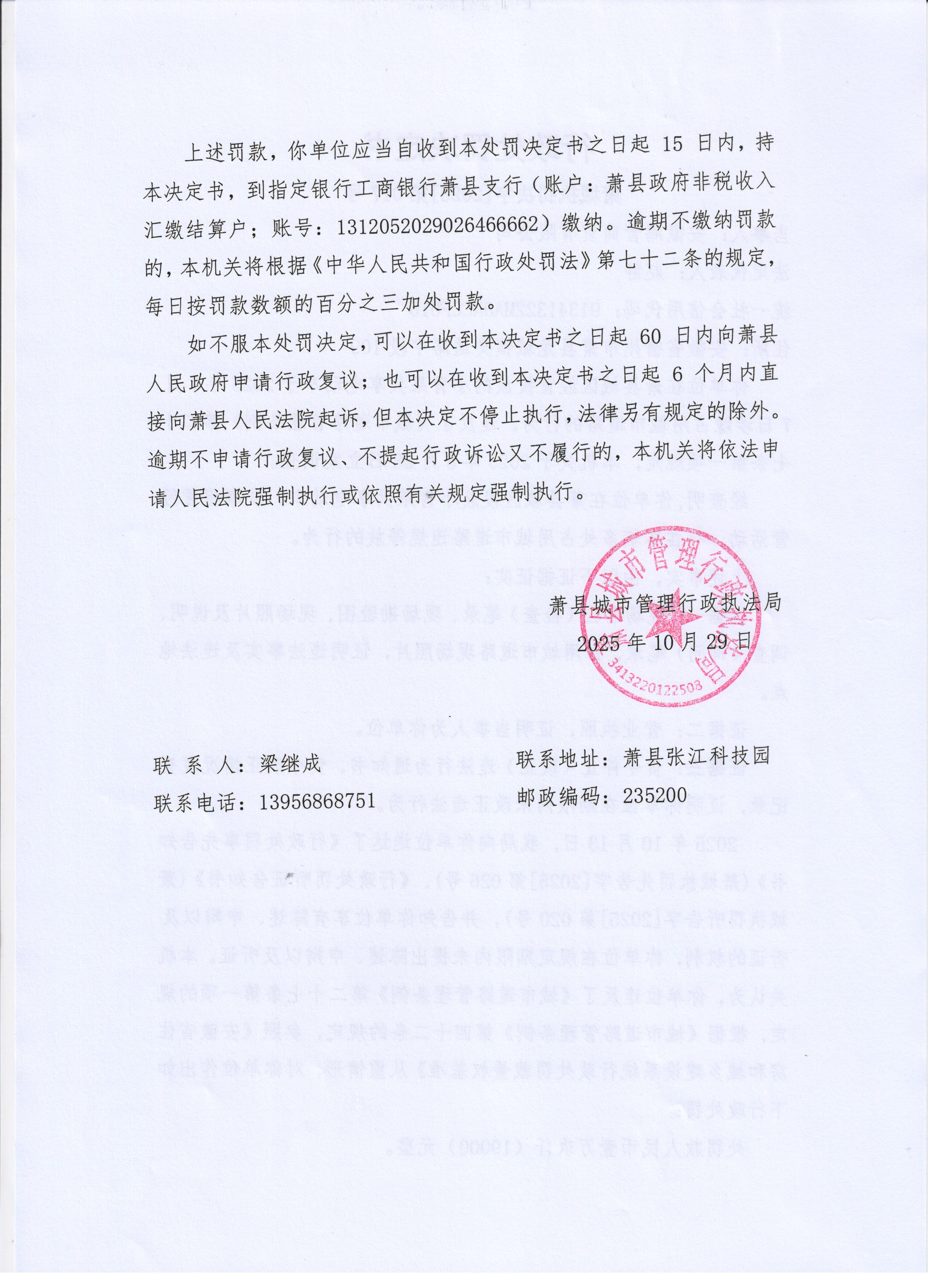 萧县城市管理局2025年相对集中其他领域处罚权事项行政处罚公示(三)