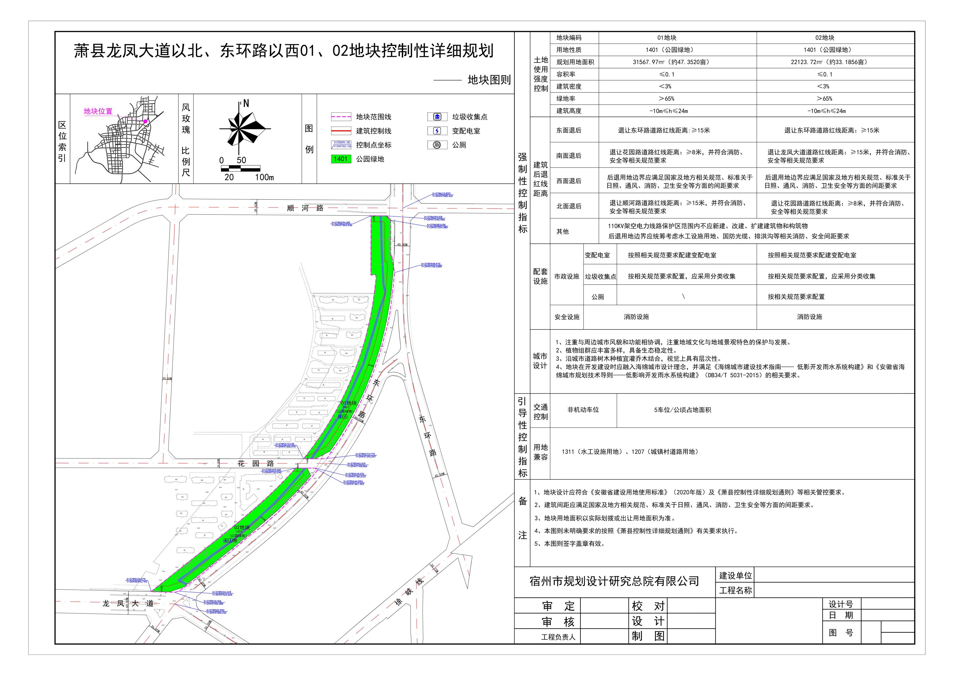 萧县龙凤大道以北、东环路以西01、02地块控制性详细规划地块图则批前公示