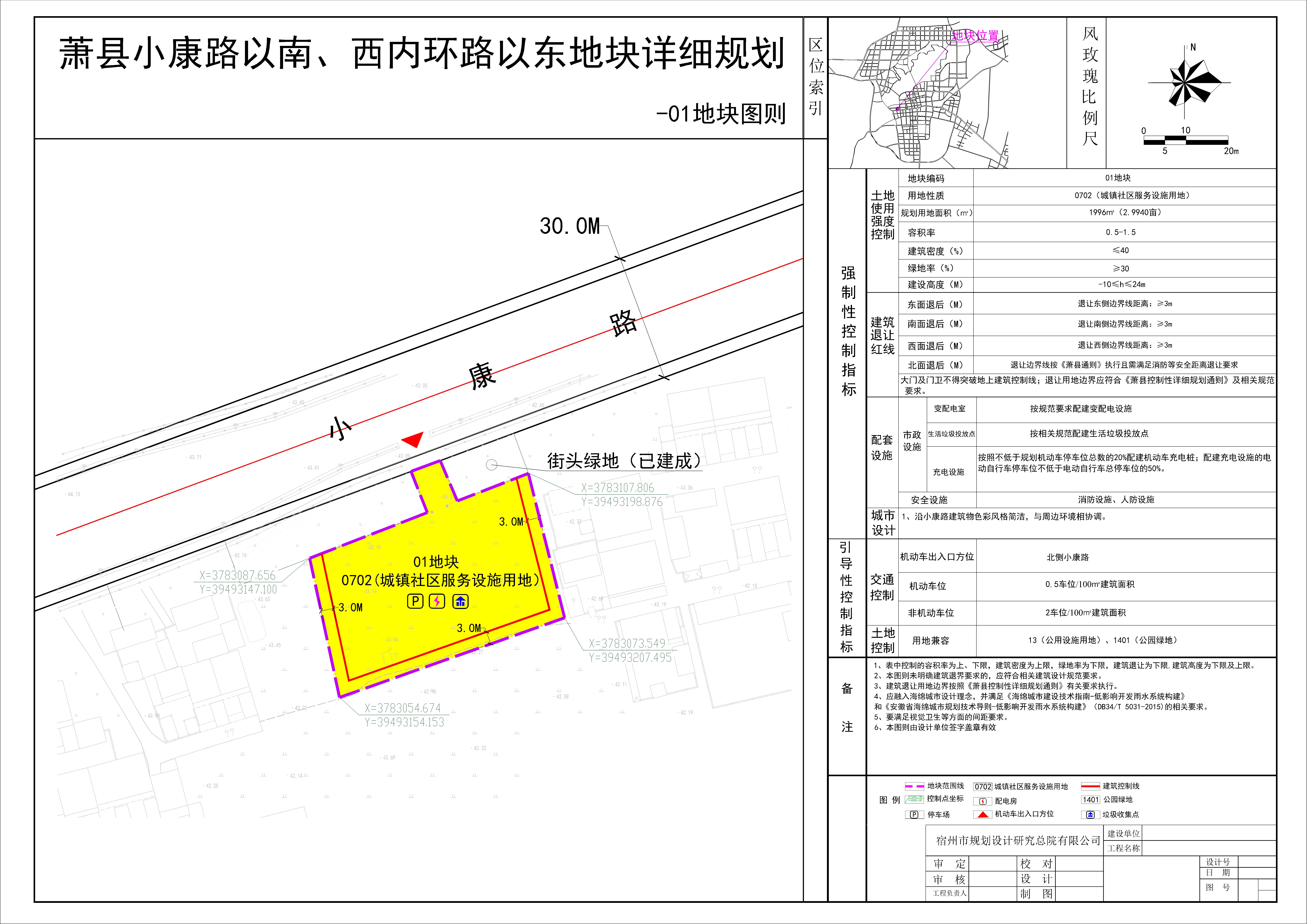 萧县小康路以南、西内环路以东01地块详细规划地块图则批后公告