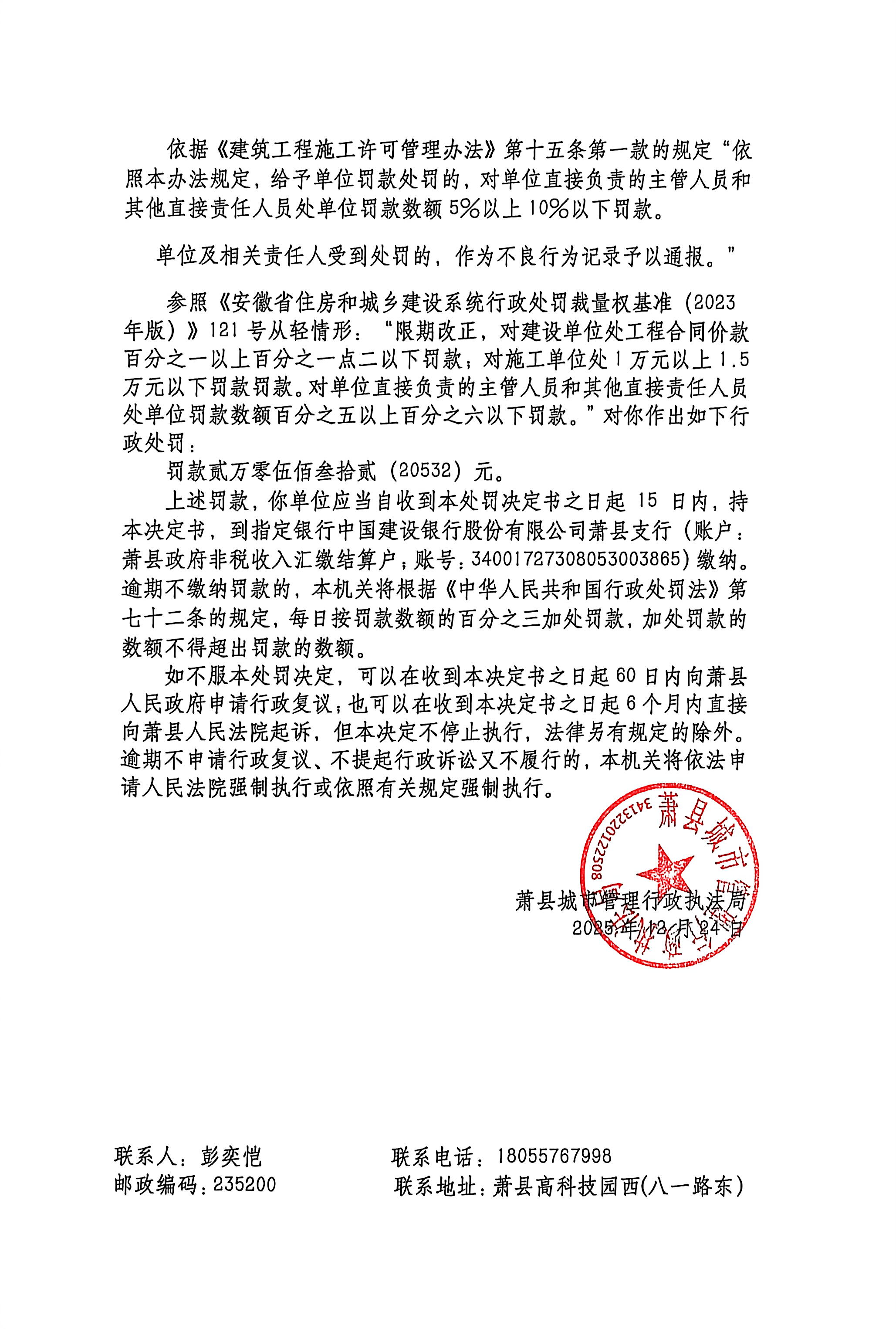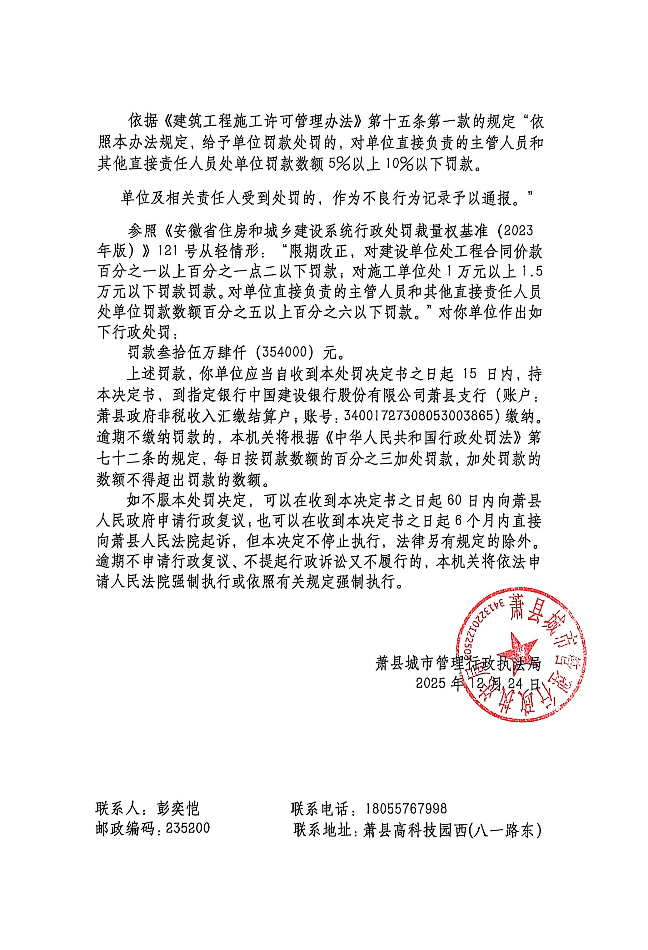 萧县城市管理局2025年工程建设管理行政处罚公示(九)