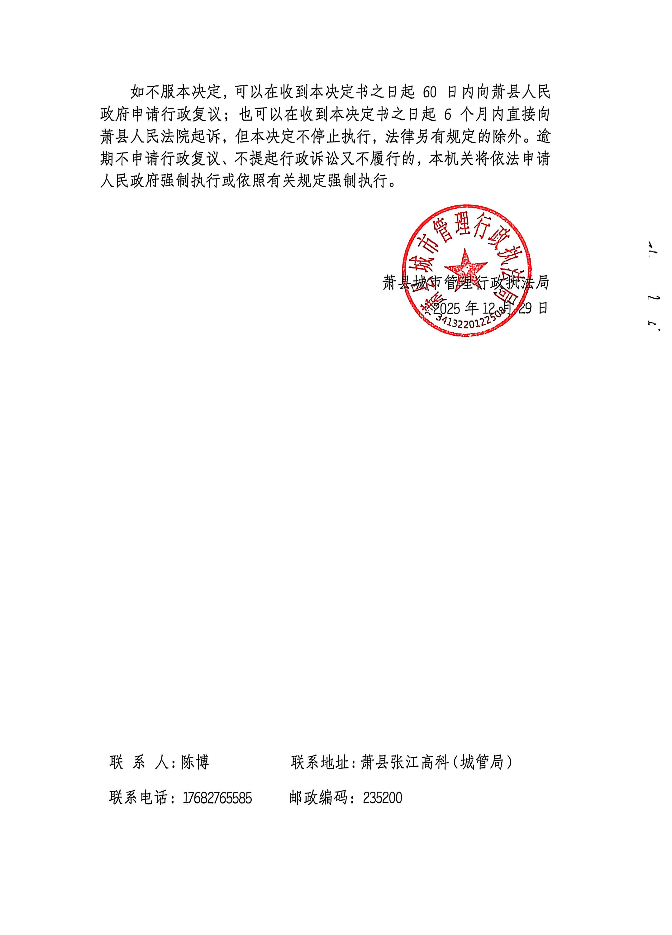 萧县城市管理行政执法局2026年1月违法建设限期拆除决定书(送达)公示
