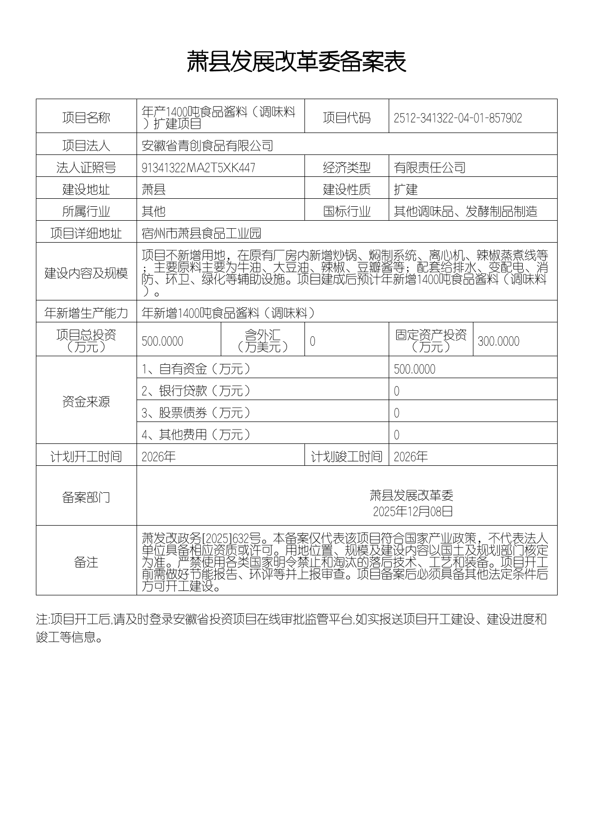 安徽省青创食品有限公司年产1400吨食品酱料(调味料)扩建项目2025.12.8.pdf