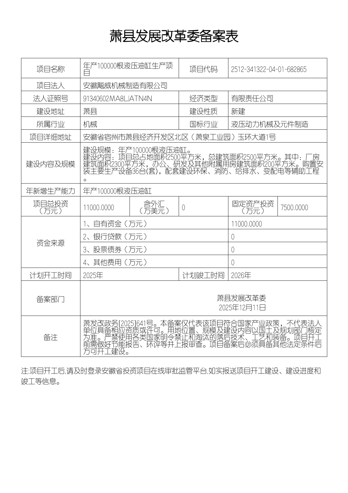 安徽飚威机械制造有限公司年产100000根液压油缸生产项目2025.12.11.pdf
