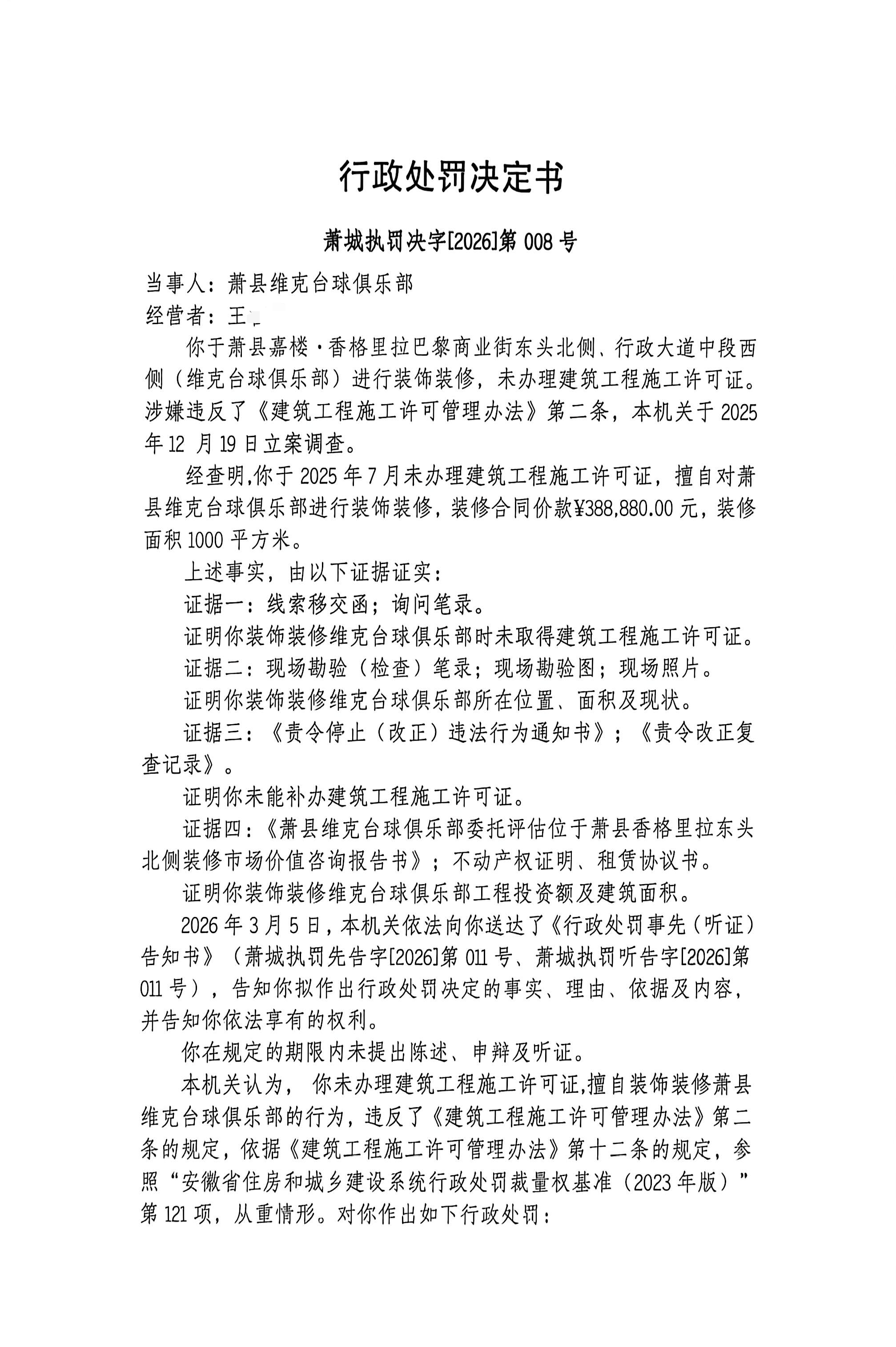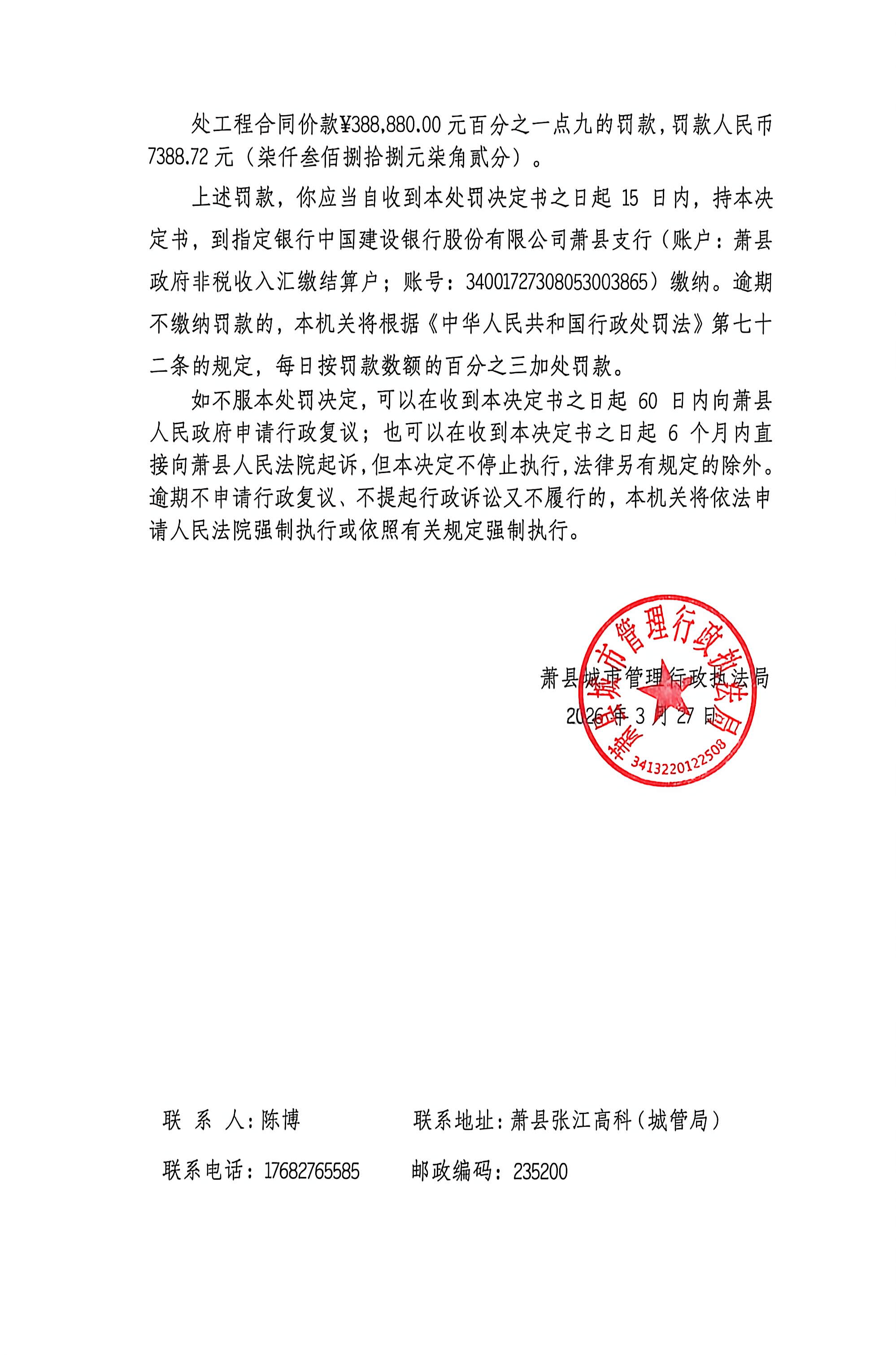 萧县城市管理局2026年工程建设管理行政处罚公示(一)