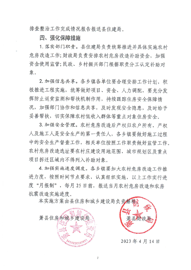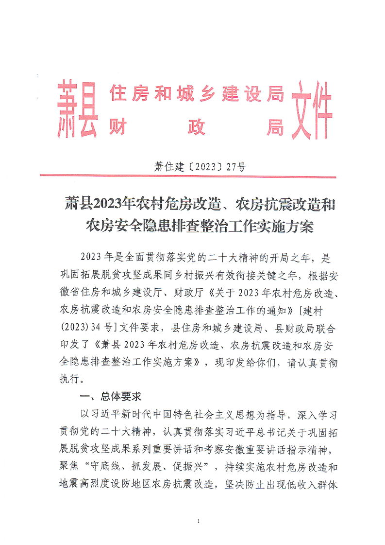 萧县2023年农村危房改造、农房抗震改造和农房安全隐患排查整治工作实施方案