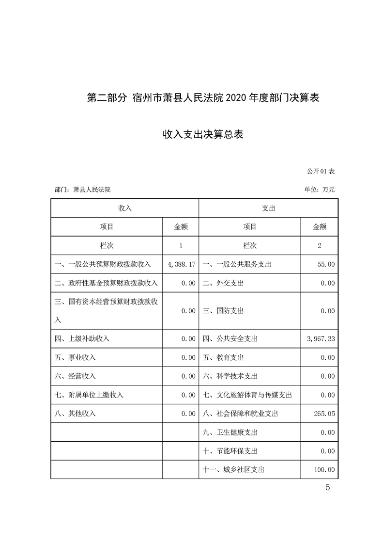 萧县人民法院2020年决算公开 |
