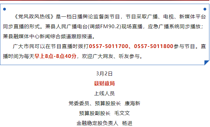 【在线访谈】萧县财政局2025年3月2日上线《党风政风热线》