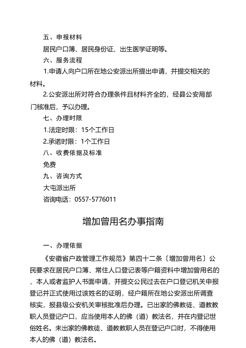 萧县大屯镇公共服务事项办事指南(2023年版) |