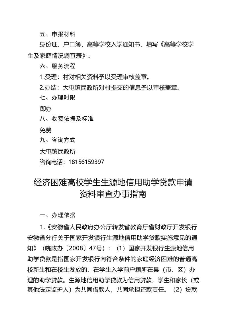 萧县大屯镇公共服务事项办事指南(2023年版)