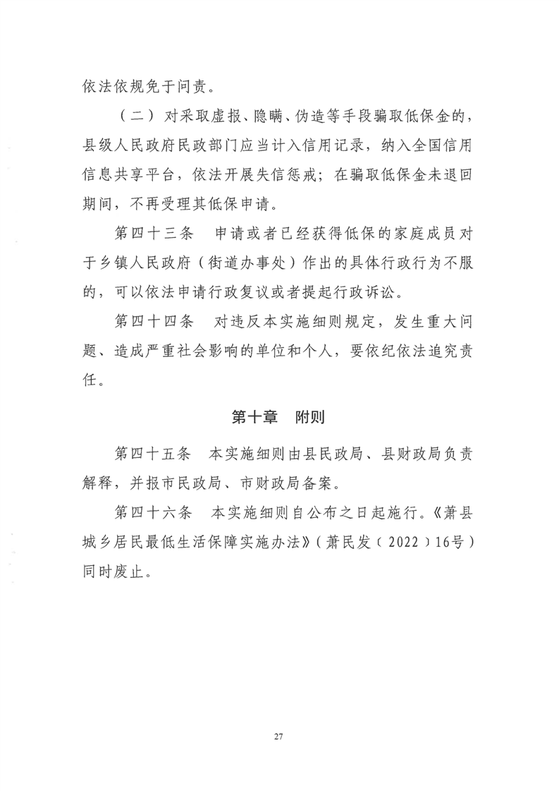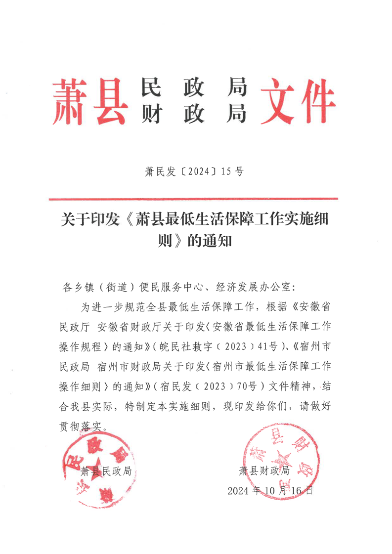 【政策文件】关于印发《萧县最低生活保障工作实施细则》的通知(萧民发【2024】15号)