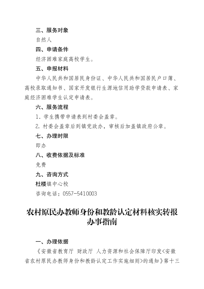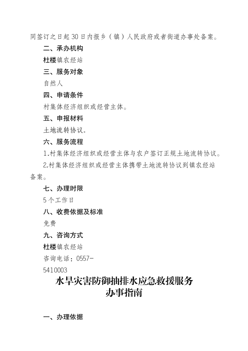 萧县杜楼镇公共服务事项办事指南(2023年版) |