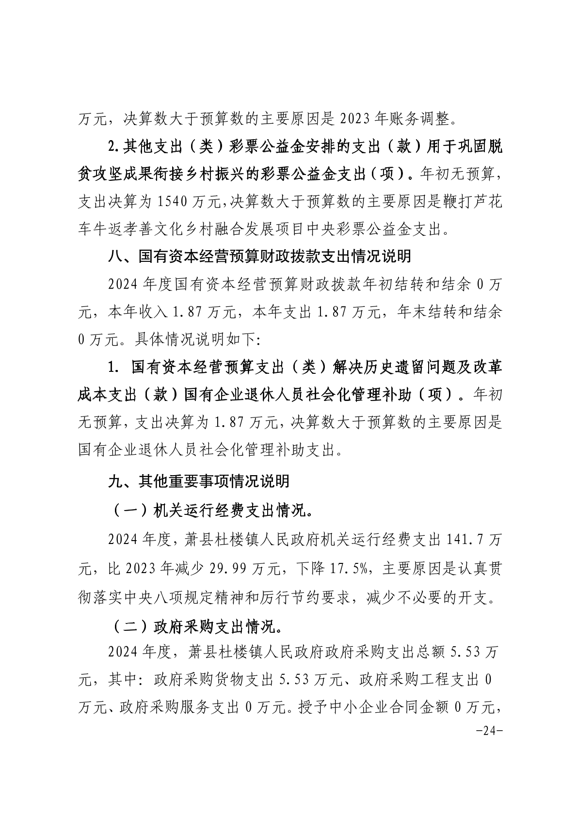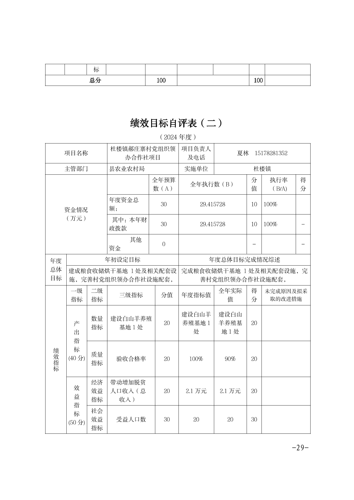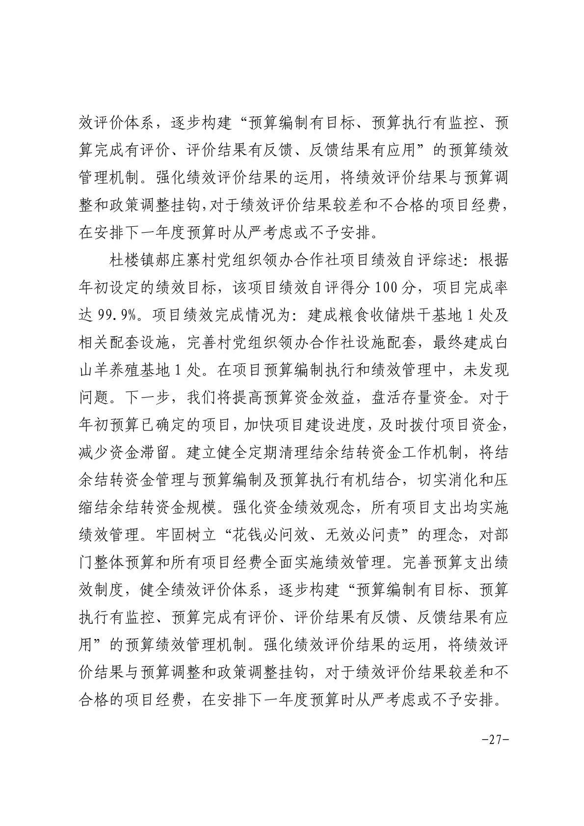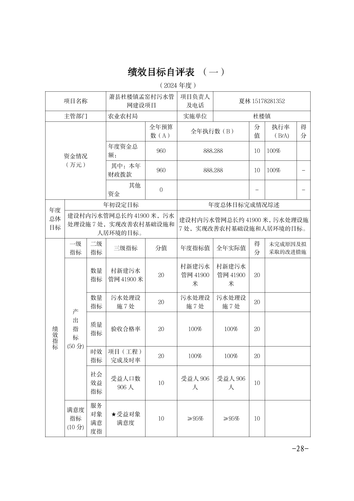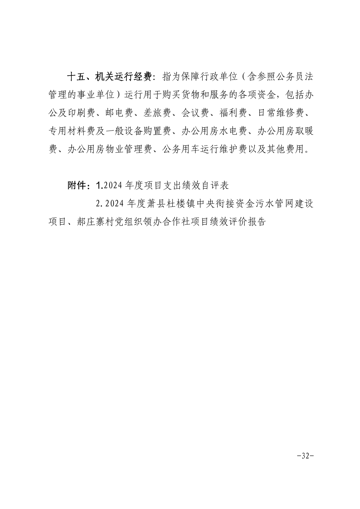 萧县杜楼镇人民政府2024年度部门决算.pdf附件1:2024年度项目支出绩效自评表.xlsx 附件2:2024年度萧县杜楼镇郝庄寨村党组织领办合作社项目绩效自评报告.docx2024年度萧县杜楼镇中央衔接资金污水管网建设项目绩效自评报告.docx