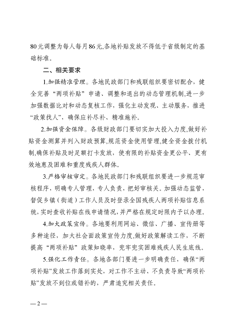 【政策文件】关于提高困难残疾人生活补贴和重度残疾人护理补贴标准的通知